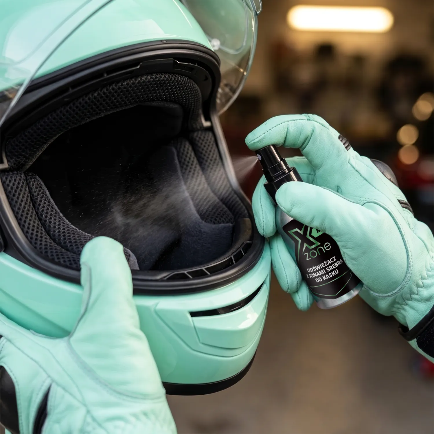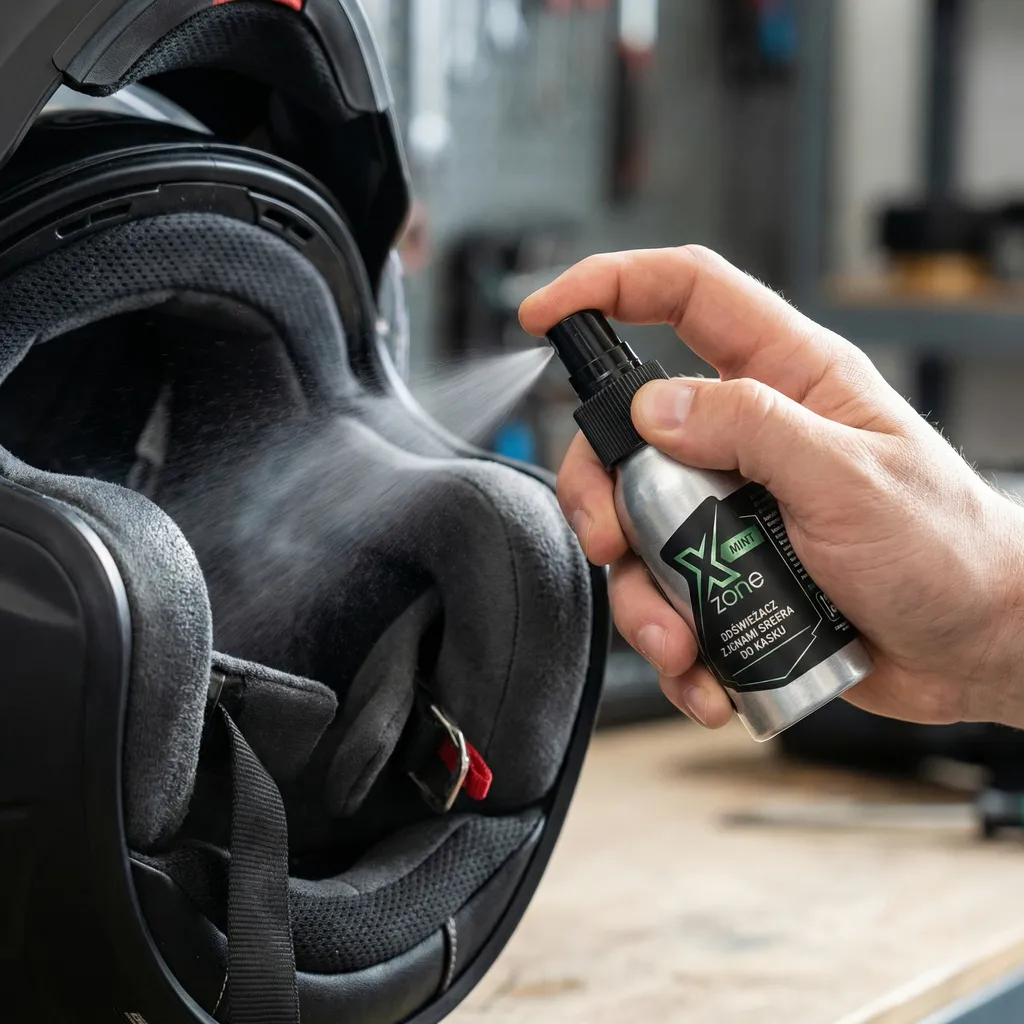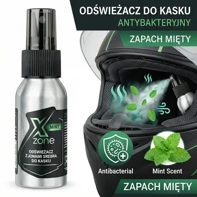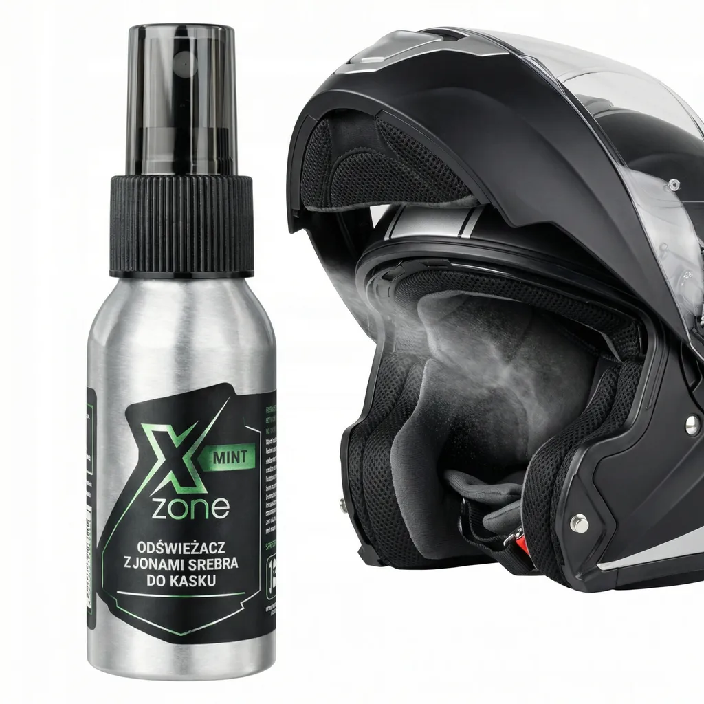 Odświeżacz do kasku Xzone® z jonami srebra to spray stworzony do stosowania wewnątrz kasków motocyklowych – tam, gdzie gromadzi się pot, wilgoć i zapachy po jeździe.