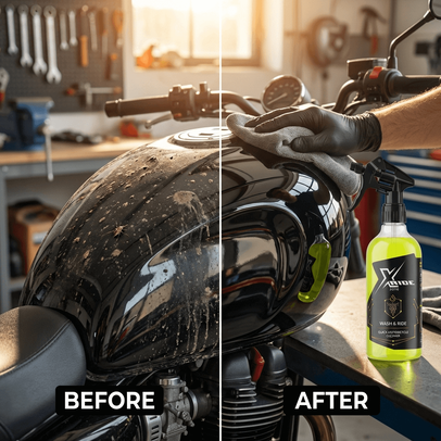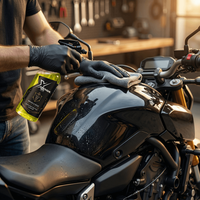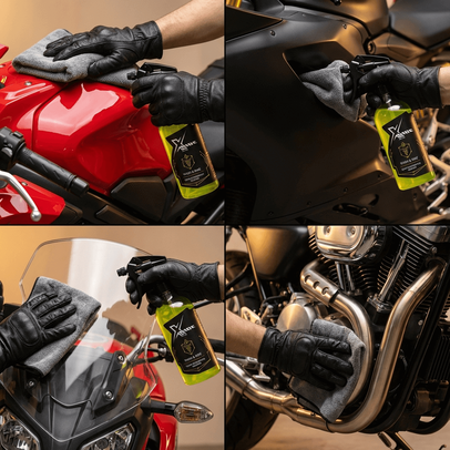 Spryskaj powierzchnię, przetrzyj miękką mikrofibrą i gotowe — motocykl wygląda świeżo i jest gotowy do jazdy.